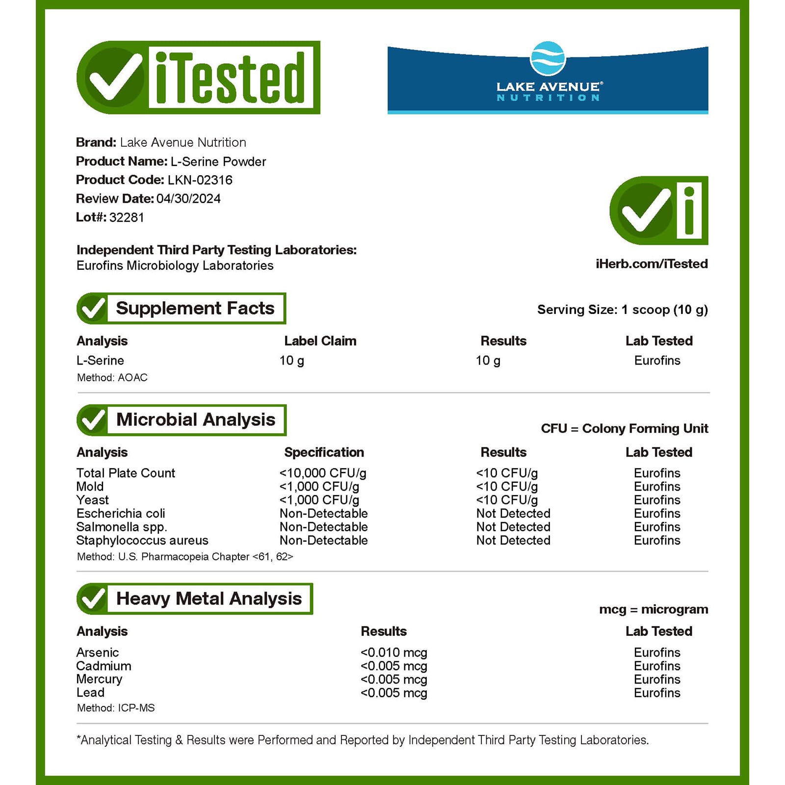- L-Serina em Pó da Lake Avenue Nutrition®