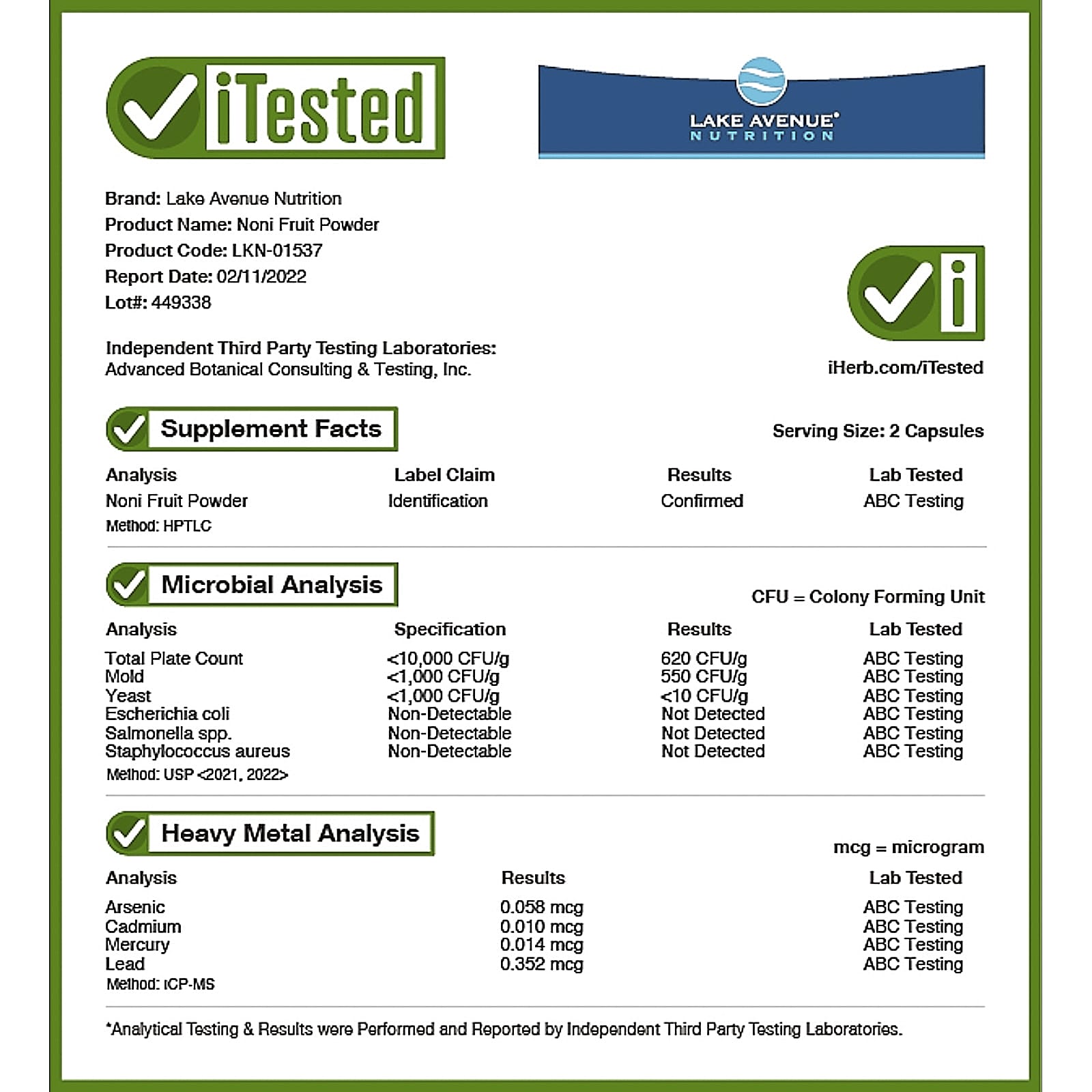 Lake Avenue Nutrition Noni em Pó 360 Cápsulas Vegetais – Lake Avenue Nutrition Suplementos Ervas Noni.