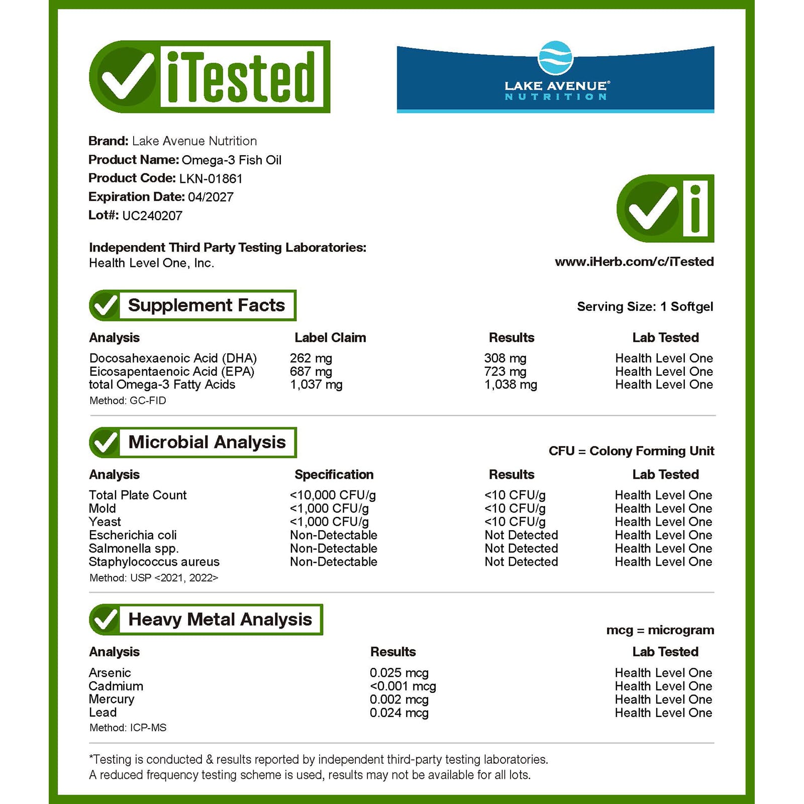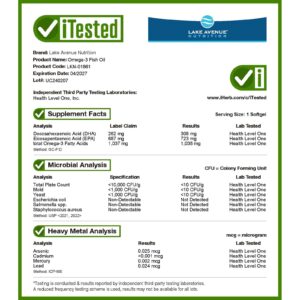 O Óleo de Peixe Ômega-3 da Lake Avenue Nutrition contém as duas formas de triglicerídeos dos ácidos graxos EPA e DHA em uma cápsula softgel de gelatina de peixe.