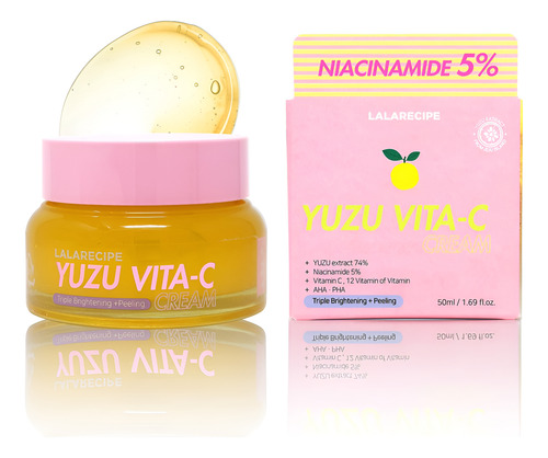 Creme facial LALARECIPE Yuzu Vita C: hidratante diário coreano com Jeju yuzu, niacinamida, AHA e PHA. Hidrata e ilumina para uma pele radiante e suave (50 ml/1,69 fl oz).