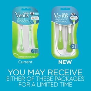 Gillette Venus Extra Smooth Green Disposable Womens Razors – 2 Count – Experience skin that feels extra smooth for longer – 5 diamondlike coated blades, perfectly balanced, glide over your skin – The water-activated Ribbon of moisture around the blade helps protect from nicks & cuts. – Any Venus blade fits any Venus razor handle, except Venus Simply 3 – Formerly Gillette Venus Embrace Disposable Womens Razors