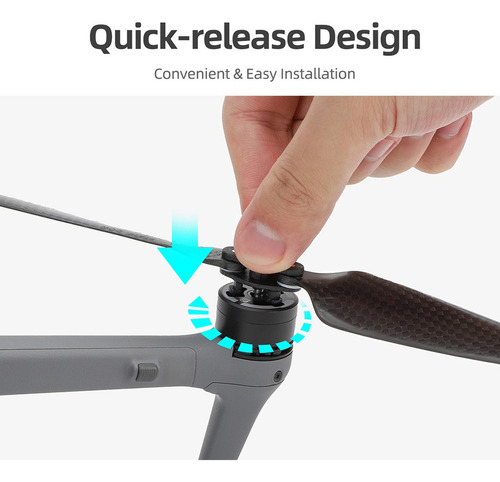 Design dobrável: As hélices são dobráveis para facilitar o armazenamento e o transporte. Elas podem ser instaladas e removidas rapidamente usando o design de liberação rápida do tipo push.