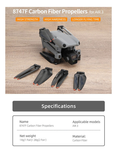 Design exclusivo: Esse conjunto de hélice de fibra de carbono e alça de hélice é compatível exclusivamente com os drones DJI Air 3.