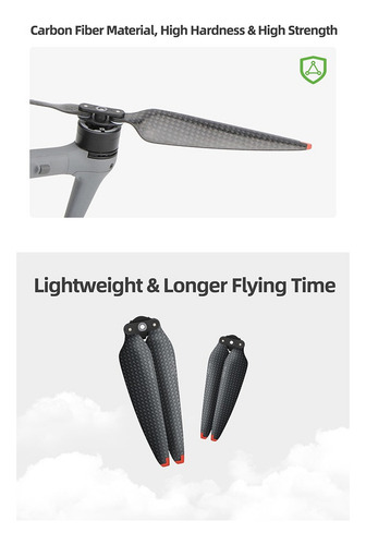 Vantagem da redução de ruído: O material de fibra de carbono das hélices é leve e perfeitamente compatível com os drones. As hélices não afetam o desempenho de voo do drone e podem reduzir efetivamente o ruído durante a decolagem.