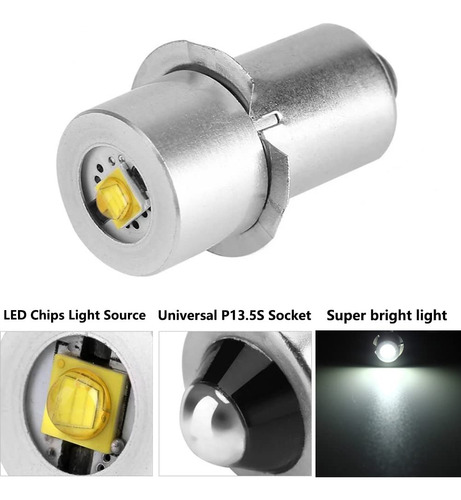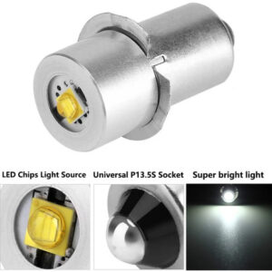 Modelo do item: P13.5S Potência: 3W Ângulo de feixe: 110 graus Lúmen: 200LM Cor: branco Temperatura de cor: 6500K Tensão: DC 4V-12V Base: LED P13.5S Quantidade: 1 LEDs por lâmpada Função: Toque, farol da lanterna Vida útil: 30.000 horas – LANTERNA LED Upgrade BULB – Converta a maioria das lanternas incandescentes de flange estilo PR de 3-6 células transforme lanternas brilhantes e duradouras com esta lâmpada de atualização de lanterna, compatível com lâmpada Maglite ou lâmpada de reposição, com tecnologia LED. – SUBSTITUA POR UMA ATUALIZAÇÃO – A lâmpada da lanterna está queimada? Faça uma atualização rápida e eficiente com esta lâmpada LED substituta, abrindo-a da mesma forma que faria com uma lâmpada convencional. – ECOLOGICAMENTE CORRETA – A tecnologia LED desta lanterna LED oferece uma vida útil de bateria muito maior, tornando-a uma escolha econômica e ambientalmente inteligente como lâmpada LED de atualização, lâmpada de atualização geral de lanterna ou lâmpada de substituição. – LUZ LED BRILHANTE – Ilumine seu caminho com iluminação branca e saída de alta potência de 200 lúmens esta lâmpada LED de lanterna, em oposição ao amarelo opaco das lâmpadas incandescentes. – ALTA POTÊNCIA, LONGA DURAÇÃO – A lâmpada de atualização da lanterna de alta potência LudoPam é duradoura e confiável, oferecendo cerca de 30.000 horas de uso.
