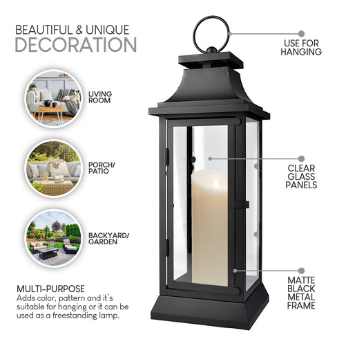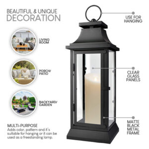 Having a wedding, party, or event? Then consider these black lanterns as an alternative centerpiece for your tables. These square iron lanterns will add an air of timeless beauty to weddings and special occasions. They are one of our popular styles, featuring black colored iron frames and clean glass panels. These lanterns are available in 3 different sizes; 15 inch, 20 inch, and 25 inch, and the lanterns can fit up to a 3 inch wide pillar candle, perfect for radiating soft light. Serene Spaces Living specializes in creating good quality accents that look great anywhere! – BEAUTIFUL AND UNIQUE DECORATION – Perfect whether you are creating a beautiful tablescape centerpiece or looking for rustic dcor for a special event. Light up the aisle or runway at your wedding for a breathtaking entrance. – CREATE THE PERFECT AMBIANCE – Light up your back porch/deck or add the perfect touch of low light to your living room. The unique color and shape of the jars add a stylish detail to any room. – MULTI-PURPOSE: These lanterns add color, pattern and its suitable for hanging or it can be used as a freestanding lamp. Great for weddings, parties, patio, events for indoors/outdoors and more. – DCOR IDEAS: Your venue will be well lit and inviting for all attending guests. You can showcase these lanterns on their own as alternative centerpieces or position them among flower arrangements on your tables. Perhaps you will choose to line your wedding entrance with glowing square iron lanterns or illuminate a dark lit room with a mellow glow. – SOLD INDIVIDUALLY: Sold individually, measures 15 Tall and 5 Diameter. Please note that this lantern primary for indoor use and applicable short term outdoor use only.