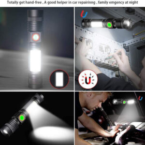 Por que escolher a lanterna magnética recarregável Hoxida? 1. Lanterna LED super brilhante — A lanterna LED Hoxida fornece 2.000 lm (máx.) e pode ter uma distância de iluminação de até 600 pés. Lanterna recarregável com cabo USB — Lanterna LED pequena Hoxida vem com cabo USB recarregável. Apenas 3 horas para totalmente carregada. Carregue por qualquer dispositivo USB. 3. Lanterna magnética com luz lateral COB — Ímã forte na parte inferior da lanterna leve e pode ser adsorvido em materiais como ferro e aço inoxidável. Quando você está acampando e caminhando, ela deixa as mãos livres, operação muito inteligente. 4. Modo MUTI de uso — esta lanterna tem 4 modos de iluminação: alto brilho, brilho médio, baixo brilho, estroboscópio, SOS, luz lateral COB, atende aos seus diferentes requisitos 5. Resistente à água e zoom ajustável — A lanterna LED Hoxida foi projetada à prova d'água, é segura quando você usa em dias de chuva. E zoom ajustável que permite que você ajuste do holofote ao holofote de acordo com as situações. 6. Conveniência — Leve e tamanho compacto garantem a portabilidade. Um chassi compacto de bolso com um clipe de bolso torna esta lanterna de bolso recarregável conveniente de transportar na vida cotidiana. 7. Garantia de 18 meses sem preocupações — Hoxida Oferece 30 dias sem motivo para devolução/devolução do dinheiro e 18 meses de garantia para todas as lanternas brilhantes. Especificações: 2) Material: liga de alumínio 3) Cor da luz: branco 4) Peso: 3,36 onças 5) Tamanho: 5,46 polegadas (comprimento) 6) 4 modos: alto, baixo, estroboscópico, luz COB 8) Impermeável: à prova de chuva, mas não pode ser mergulhado na água Conteúdo do pacote: 2x lanterna LED magnética 2x cabo micro USB – Lanterna LED recarregável super brilhante, 2000 lúmens, 4 modos: A lanterna recarregável Super Bright fornece uma saída máxima de 2.000 lúmens, que a distância do feixe pode ser de até 600 pés. A função de zoom ajuda esta lanterna LED magnética a ser totalmente ampliável, desde holofotes de grande área até holofotes focados lanterna; a lanterna tática LED tem 4 modos: modos de luz lateral alta/baixa/COB SOS/COB, o modo SOS mantém você sempre seguro em qualquer situação de emergência. – Lanterna LED com ímã e luz lateral COB —– A lanterna LED recarregável projeta uma base magnética forte que você pode conectar esta tocha a qualquer superfície de ferro, combine com luz lateral COB para uma iluminação de área maior, HoxxA lanterna recarregável Ida Magetic pode deixar você totalmente livre quando precisar fazer algum reparo, trabalhar à noite ou funcionar como lanterna de emergência para inspeção de automóveis ou queda de energia em caso de tufão. clima. – Lanterna USB recarregável, de longa duração, proteção contra sobrecarga — Lanterna carregada por USB com porta tipo C para uma vida útil de carregamento mais estável e longa, só precisa de 3 horas para carregar completamente por meio de qualquer porta USB, a lanterna tática recarregável pode funcionar por até 10 horas (modo baixo) de tempo de trabalho; lanterna LED recarregável com versão atualizada e listada pela UL de proteção contra sobrecarga, a lanterna para de carregar está totalmente carregada, para que você não precise se preocupar com problemas de segurança ao esquecer que a lanterna está carregando. – Lanterna à prova d'água, tamanho de bolso — Com nível de impermeabilidade IPX6 de alto nível, você pode usar estas lanternas táticas em dias de chuva ou neve, lanterna LED pequena de apenas 5,46 polegadas de comprimento e com um clipe de bolso amigável, o que significa que esta lanterna compacta em tamanho de bolso é a melhor escolha para sua lanterna EDC ou lanterna de acampamento. – Função Smart One Key Off —— A lanterna LED Hoxida exclusiva de tamanho único resolve o problema em percorrer todos os modos para desligar a lanterna: pressione facilmente o botão 2S e, em seguida, esta lanterna LED recarregável será desligada diretamente. Simples e fácil de usar, um design conveniente e essencial para acampar ao ar livre, uso emergencial. – O que você receberá —— 2 lanternas LED recarregáveis, 2 peças de cabo USB. 1 peça manual do usuário. 30 dias sem motivo para devolução/devolução do dinheiro, nosso objetivo é oferecer o melhor. – Hoxida – Hoxida começou a vender séries de lanternas desde 2019 e vendeu mais de 2.000.000 de lanternas LED durante essas 5 anos na Amazon, confiável e popular por muitos amantes de lanternas. ADICIONE AO SEU CARRINHO SEM HESITAR. Você pode confiar nisso.