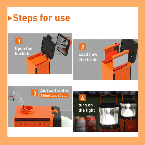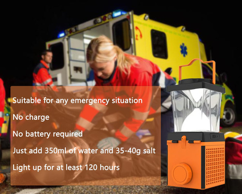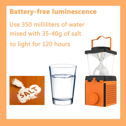 Ilumine suas aventuras ao ar livre com a lanterna de emergência de água salgada, uma solução de iluminação sustentável e ambientalmente consciente. Esta lanterna de acampamento inovadora aproveita a energia da água salgada para fornecer até 140 horas de iluminação contínua, eliminando a necessidade de baterias ou eletricidade. Compacto e leve, é o companheiro perfeito para viagens de acampamento, expedições de caminhadas ou situações de emergência. Basta adicionar água salgada à lanterna e ela emitirá um brilho ambiente suave, criando uma atmosfera calorosa e convidativa ao redor de seu acampamento ou barraca. Com sua construção durável e design à prova d'água, esta lanterna é construída para resistir aos elementos, garantindo um desempenho confiável em qualquer ambiente externo. Aproveite a conveniência de nunca ficar sem baterias e a tranquilidade de ter uma fonte de luz sustentável na ponta dos dedos. Experimente a magia da lanterna de emergência com lanterna de água salgada e deixe-a iluminar suas aventuras com seu brilho de design ecologicamente correto. – Solução de iluminação ecológica: ative facilmente esta versátil luz de acampamento de água salgada para obter uma fonte de luz sustentável e ecológica sem baterias. Ótimos presentes de Natal e Ano Novo para seus amigos, filhos e familiares – Tempo de iluminação prolongado: desfrute de até 150 horas de iluminação contínua e duradoura com uma única adição de 350 ml de água salgada – Perfeitas para aventuras ao ar livre e preparação para emergências – Usos externos versáteis: compactas e portáteis, essas luzes de acampamento foram projetadas para acampar, caminhar e são indispensáveis como kits de emergência para garantir iluminação confiável em qualquer situação – Companheira de viagem conveniente: leve e fácil de transporte, esta luz de água salgada é perfeita para uso em qualquer lugar, tornando-a uma blusa escolha para entusiastas de atividades ao ar livre e viajantes – Sem combustível e segura: essa luz de água salgada aproveita o poder da energia segura e renovável, eliminando a necessidade de combustíveis perigosos e baterias descartáveis, proporcionando tranquilidade toda vez que você a usa – Ultra Bright: o brilho de 360 de até 350 lúmens iluminará seu espaço. A tampa refletora translúcida permite que a luz passe ao máximo, fornecendo brilho suficiente para quedas de energia domésticas, emergências ou uso externo