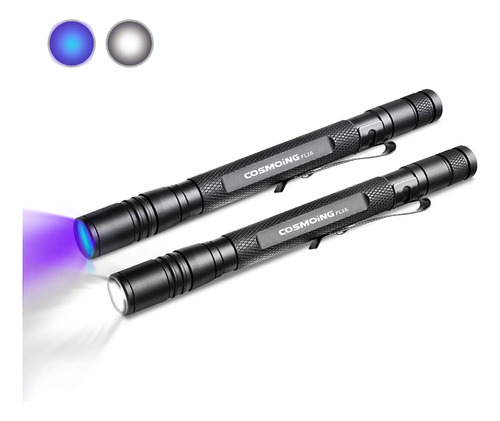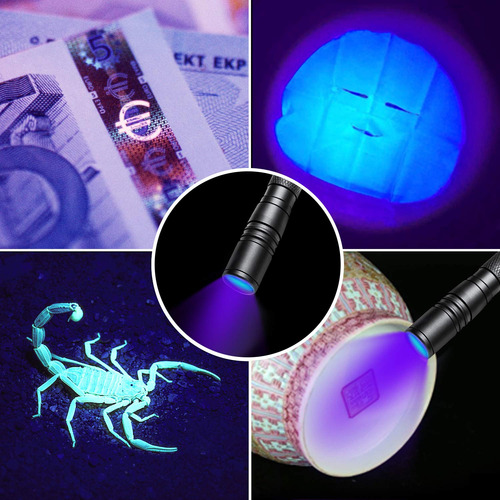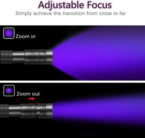 LANTERNA UV PERFEITA PARA DETECTAR MANCHAS INVISÍVEIS A luz negra ultravioleta COSMOING de 395 nm detecta exatamente manchas ocultas de alimentos ou animais de estimação de cães, gatos e outros animais de estimação em tapetes, não há necessidade de limpar todo o carpete a vapor, a luz negra UV identificará as áreas com facilidade. Identifique dinheiro falso e revele a tinta escondida no passaporte, dinheiro ou outros documentos importantes, ideal para manchas e manchas invisíveis que não podem ser vistas a olho nu. O