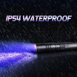 Classificação impermeável e SMARTIPX4 desta luz negra UV, melhor usada para aplicações internas ou externas. A lanterna tática é construída em liga de alumínio de alta qualidade. Antiderrapante, impermeável, à prova de explosão e à prova de choque. Lanterna de luz negra LED ainda melhor do que a chamada lanterna ultravioleta 51 led, lanterna ultravioleta 100 led, lanterna ultravioleta 21 led. etc.