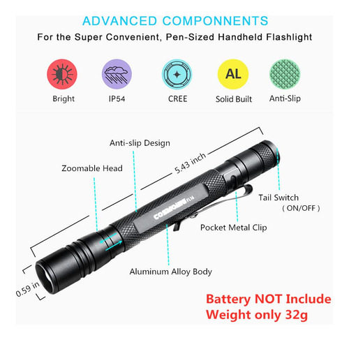 LEVES E PORTÁTEIS. Compactas, as mini lanternas são pequenas e leves para caber na sua mão. Vem com um clipe de metal, a lanterna fina é fácil de transportar e colocar em um bolso ou caixa de ferramentas para fácil armazenamento e acesso rápido, facilmente colocada em sua bolsa ou barra de ferramentas.