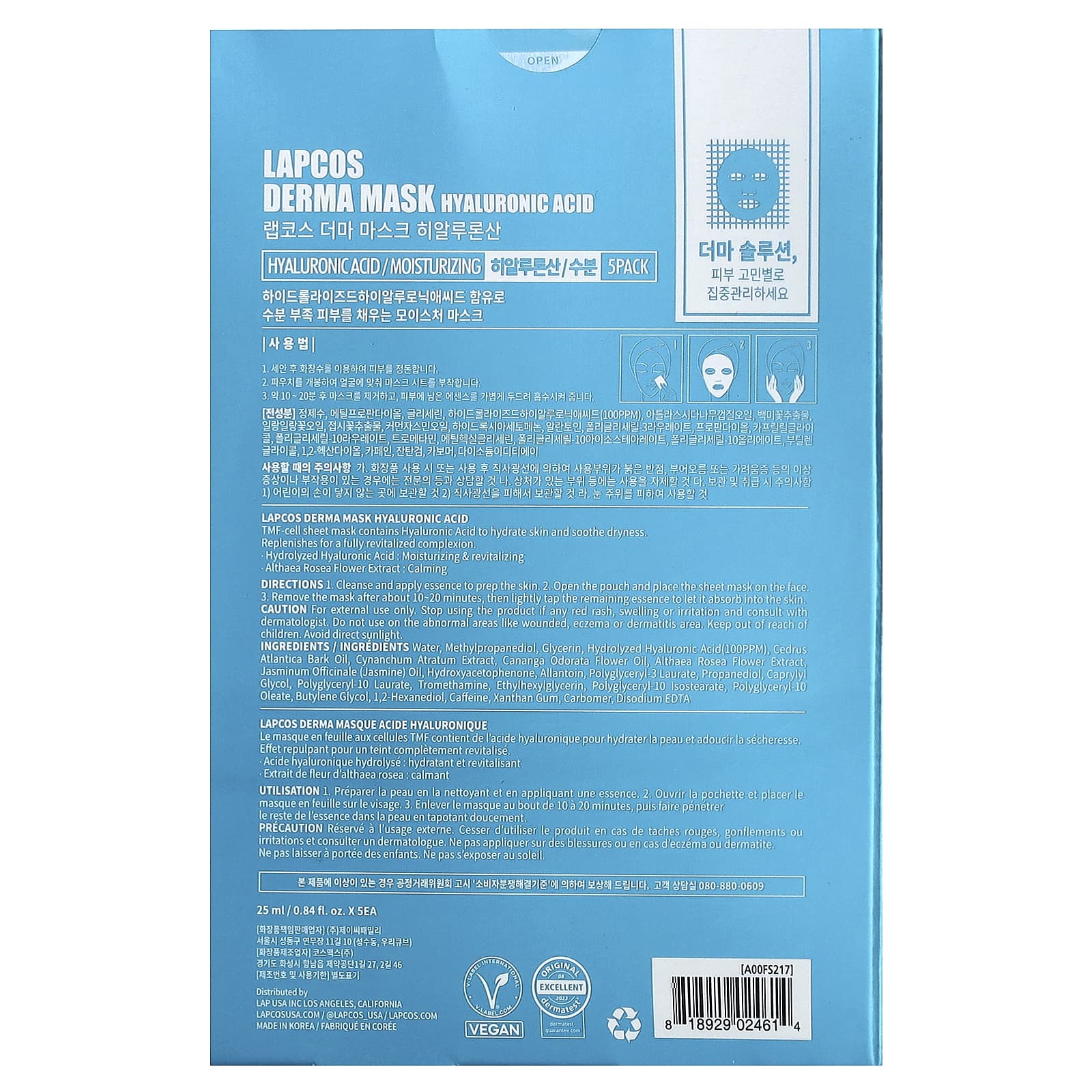 Lapcos Conjunto de Máscaras de Beleza Hidratante Hidratante 5 Folhas 25 ml (084 fl oz) Cada – Lapcos Beleza Máscaras Faciais de Beleza Máscaras Faciais Máscaras em folha K-Beauty.
