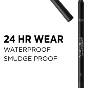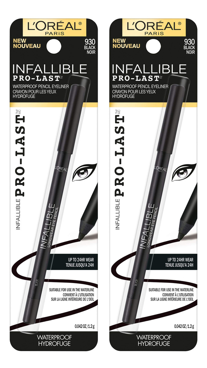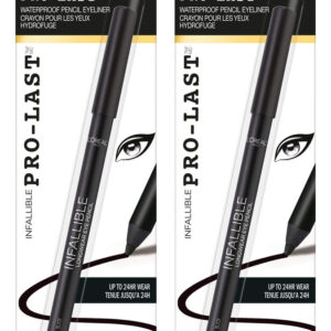 LOreal Paris Makeup Infallible Pro-Last Pencil Eyeliner, Waterproof and Smudge-Resistant, Glides on Easily to Create any Look, Black, 0.042 oz., 2 Count – Infallible Waterproof Eyeliner: This long-lasting, smudge-proof eyeliner glides on easily for creamy color that lasts up to 24 hours without smudging – LOreal Eyeliner: Use our best eyeliners to achieve an everyday eye look or a bold cat eye look; Choose from a variety ranging from gel to liquid felt tip eyeliners and pencil eye liners – Create you perfect eye makeup look with our collection of mascaras, achieve sleek lines with smudge proof eyeliner, add definition to your brows and discover eye shadow palettes with shades made for every eye color – Because Youre Worth It: LOral Paris helps you create the look you want with our full line of makeup including foundations, concealers, highlighter makeup, eyeshadow palettes, lipsticks and much more – Perfect To Pair With: Voluminous Original Volume Building Mascara, uniquely formulated to resist clumping, soften and build lashes up to 5X their natural thickness