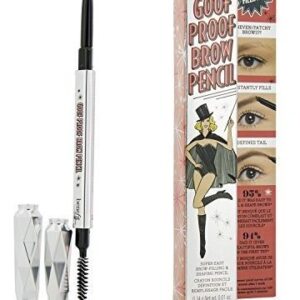 Lápis de sobrancelha Benefit Goof Proof, médio, 0,01 onça — Um lápis de sobrancelha de longa duração que define e corrige o formato de suas sobrancelhas — O lápis macio e preciso define a curva das sobrancelhas, enquanto o pincel espiral as prepara e doma — Este é um produto 100% autêntico