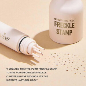 selo de 5 pontos imita uma aparência pulverulenta e bronzeada para um charme autêntico e despreocupado. INTENSIDADE PERSONALIZÁVEL. Sardas ou camadas para formar lugares ousados e divertidos que combinam com seu ambiente. USO DURADOURO A fórmula antimanchas permanece