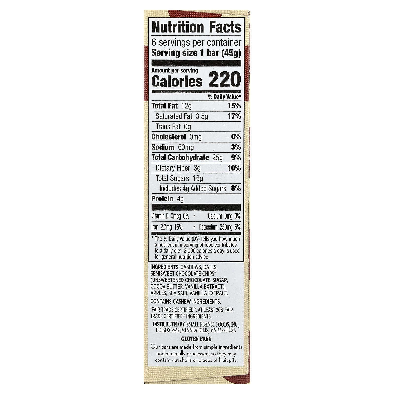 Larabar Real Fruit & Nut Bar™ Massa de Biscoito com Lascas de Chocolate 6 Barras 45 g (16 oz) Cada – Larabar Alimentos Barras.