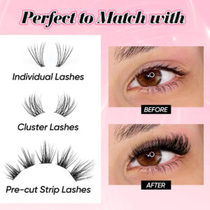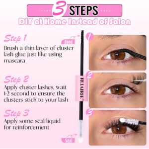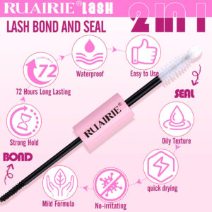 Cílios Ruairie — Mostre sua beleza única — Cola de cílios Bond and Seal para cílios cacheados — Novo design 2 em 1 de duas pontas, um lado é preto, o pincel espiral pode aplicar cola uniformemente nos cílios, assim como o rímel, o outro lado é transparente com cabeça de algodão branco, macio e seguro, protege seus olhos — Fórmula suave — Nossa cola para cílios em cachos adota uma nova fórmula segura, suave e não irritante, adicionando essencial óleo para nutrir seus cílios, adequado até mesmo para olhos sensíveis – Perfeito para várias extensões de cílios – Este selo e colagem de cílios é adequado à prova d'água para vários tipos de cachos de cílios: cílios individuais, cílios em cachos, extensões de cílios DIY, extensões de cílios, cílios pré-cortados e assim por diante – Como usar – Etapa 1: enrole os cílios se necessário, escove uma fina camada de cola para cílios, como se estivesse usando rímel Etapa 2: Aplique cachos de cílios e pressione de forma leve, fácil e rápida – Cola impermeável, forte e duradoura