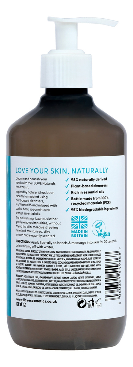 Lavagem À Mão I Love Cosmetics Naturals 500ml Para Mulheres