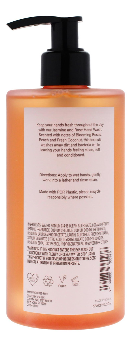 Sabonete para mãos SpaceNk Beauty Space — Jasmim e rosa para unissex — Lavagem à mão de 11,8 onças