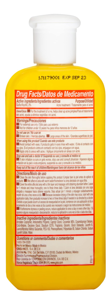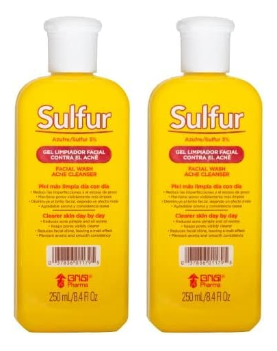 Sulfur Grisi, sabonete e limpador facial, reduz o excesso de oleosidade nas espinhas. 8,4 oz, frasco (pacote com 2) — As informações abaixo são somente por embalagem — O sabonete facial com enxofre Grisi reduz o brilho facial, deixando um efeito mate. Nosso produto o ajudará a reduzir as espinhas da acne absorvendo o excesso de óleo e desobstruindo os poros – Nosso gel de limpeza facial contra a acne usa as propriedades curativas do enxofre natural para abrir os poros entupidos, removendo as células mortas da pele, evitando erupções cutâneas, mantendo os poros visivelmente mais claros e controlando o excesso de óleo – O enxofre facial da Biosulfur, um produto da Grisi, é o melhor sabonete para acne. Isso o ajudará a reduzir a inflamação, não apenas reduzindo os efeitos da acne, mas também evitando que reapareçam no futuro. Opte por uma pele mais suave! – Se quiser, você pode mostrar uma pele mais clara a cada dia com o Grisi Sulfur Facial Wash. Ele suporta uma pele mais saudável, evitando a formação de novas espinhas e cravos pretos, removendo as células mortas da pele. Ideal para todos, se você é uma mulher que deseja ter uma pele mais lisa e sem acne ou se é um homem que gosta de ter um rosto sem óleo. Nosso sabonete facial para limpeza de acne fará o trabalho