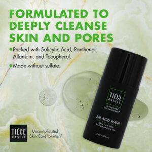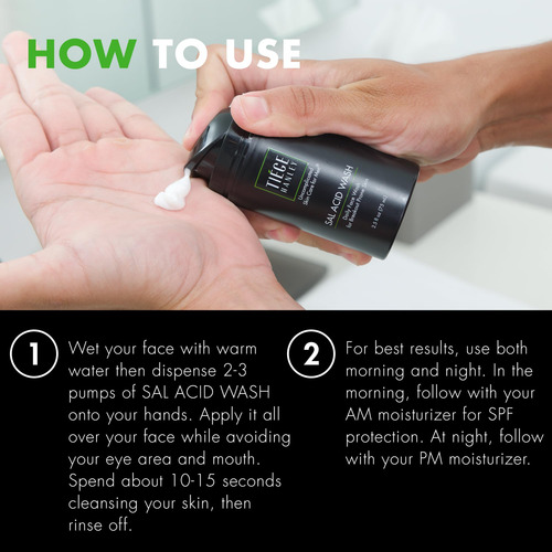 Lavagem facial diária para acne: Tiege Hanleys SAL ACID WASH é um sabonete facial para acne sem sulfato, formulado para ajudar a promover a pele clara e evitar futuras erupções cutâneas. Suave para uso diário. Bomba sem ar de 2,5 onças. – Sabonete facial diário para acne: o sabonete facial Tiege Hanleys SAL ACID WASH é um sabonete facial para acne sem sulfato, formulado para ajudar a promover uma pele clara e evitar futuras erupções cutâneas. Suave para uso diário. Bomba sem ar de 2,5 onças. — Fórmula de limpeza profunda: o ácido salicílico penetra profundamente para limpar e minimizar o tamanho dos poros. O pantenol e a vitamina E trabalham juntos para controlar a produção de óleo e melhorar a aparência geral da pele. – Deixa a pele limpa e revigorada: nossa fórmula inclui uma mistura calmante de alantoína, tocoferol e extratos naturais para ajudar a reduzir a vermelhidão e proteger a pele. – Como usar: limpe a pele com ácido salicílico, lave e depois seque. De manhã, finalize com SPF para proteção. Complete sua rotina noturna com um hidratante. Para obter melhores resultados, aplique de manhã e à noite. – Uma rotina simplificada de cuidados com a pele: nossa filosofia na Tiege Hanley é desenvolver rotinas que incluam o menor número de produtos e levem o menor tempo possível. Simples. Rápido. Bem sucedido. Você não deve ter dúvidas sobre o que está usando e o que está fazendo.