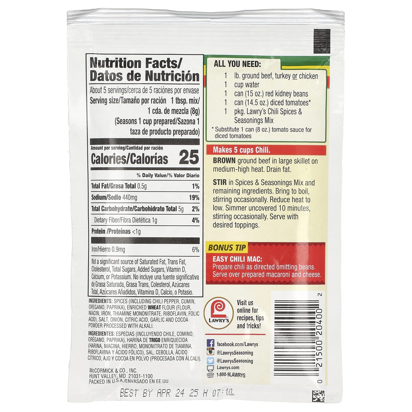 O Mix de Temperos Chili da Lawry’s é uma mistura de pimentas malaguetas e especiarias premium. Feito especialmente para chefs inspirarem menu extraordinários e produzir receitas consistentes. Use como tempero para chili com carne ou sopa de tortilla.