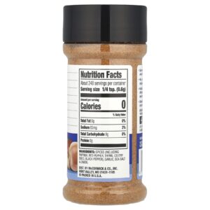 Especiarias (incluindo páprica, pimenta vermelha, tomilho, semente de aipo, pimenta-do-reino), alho, sal marinho e & cebola.