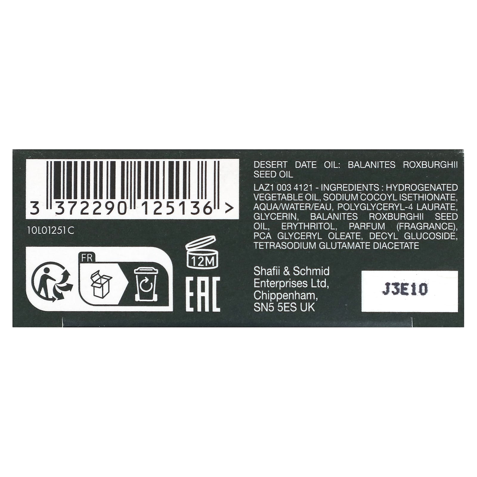 Óleo vegetal hidrogenado, cocoil isetionato de sódio. água / água / eau, laurato de poliglicerila-4. glicerina, óleo da semente de Balanites roxburghii, eritritol, parfum (fragrância) glicerol oleato de pca, decyl glucoside, tetrasodium glutamate diacetate.