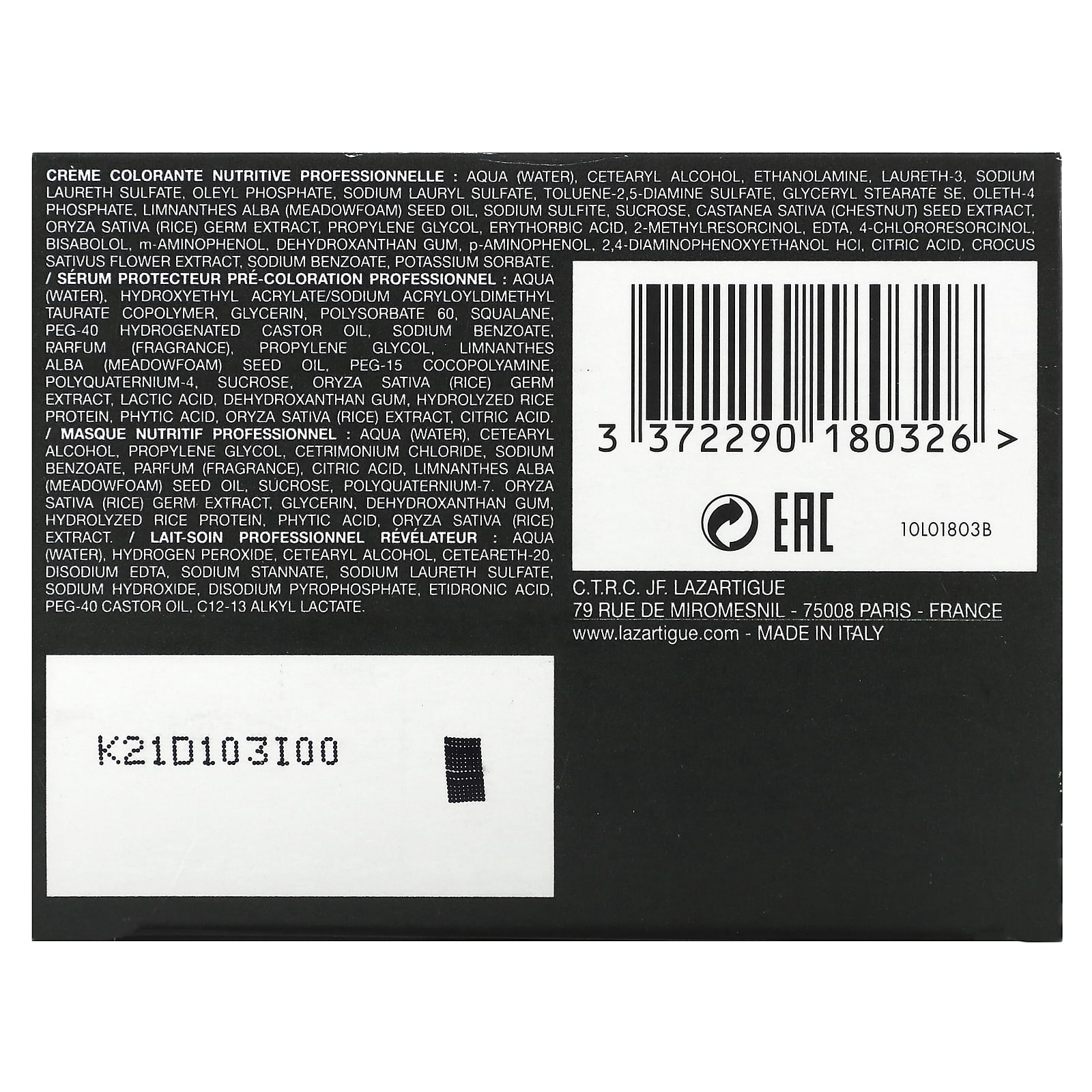 Especialista em coloração de salão desde 1976, a Lazartigue criou a La Couleur Absolue. Desenvolvido com coloristas, esta tintura permanente sem amônia com extrato botânico é concentrada com pigmentos profissionais para dar uma expressão absoluta de cor e brilho. Enriquecido com leite de arroz e óleo de semente de espuma do prado, sua fórmula é combinada com um exclusivo sérum pré-coloração ** e uma máscara para proteger e nutrir as fibras capilares antes, durante e depois da coloração.