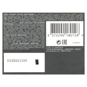 Creme corante nutritivo profissional: Aqua (água). álcool cetearílico, etanolamina, laureth-3, lauriletersulfato de sódio, fosfato de oleilo, laurilsulfato de sódio, monoestearato de glicerila autoemulsionável, fosfato de olet-4, óleo da semente de Limnanthes alba (meadowfoam), sulfito de sódio, sacarose, extrato da semente de castanea sativa (castanha), extrato de germe de Oryza sativa (arroz), propilenoglicol, ácido eritórbico, edetato, p-aminofenol, 2-metilresorcinol, sulfato de bisabolol e tolueno-2,5-diamina, 4-chlororesorcinol, goma dehidroxantana, m-aminofenol, 2,4-diaminofenoxietanol hci, ácido cítrico, extrato da flor de crocus sativus, benzoato de sódio, sorbato de potássio.