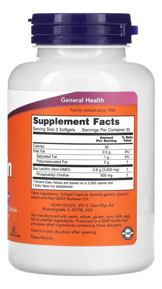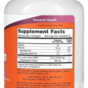A lecitina de soja da Now Foods é um suplemento nutricional de alta qualidade, formulado para promover o bem-estar geral. Cada softgel contém 1200mg de lecitina de soja, fornecendo uma dosagem ideal para uso diário;