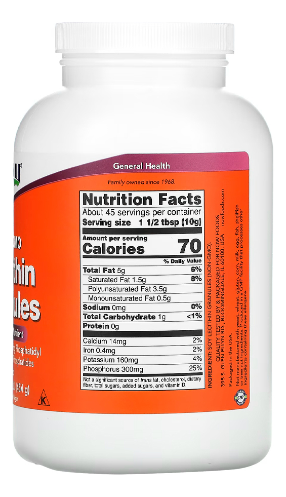 2. Forma Prática: Apresentada em grânulos de 454g, a lecitina da Now Foods é facilmente incorporada à rotina diária.