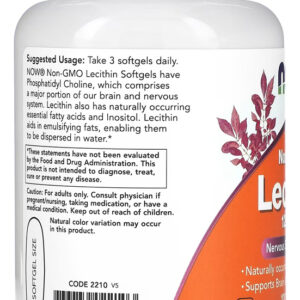 A lecitina de soja da Now Foods é um suplemento nutricional de alta qualidade, formulado para promover o bem-estar geral. Cada softgel contém 1200mg de lecitina de soja, fornecendo uma dosagem ideal para uso diário;