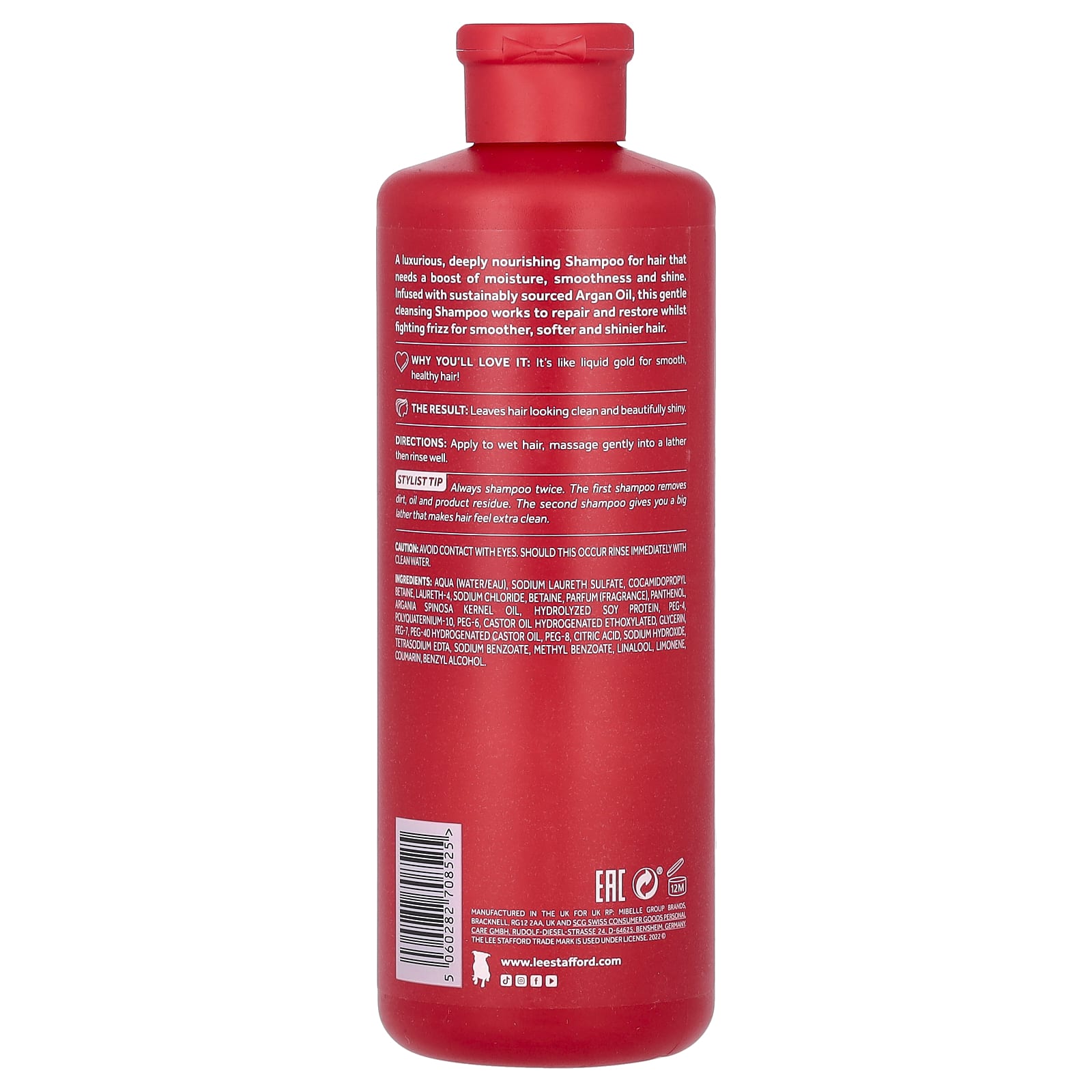 Lee Stafford Shampoo Nutritivo de Óleo de Argão para Cabelos Secos Opacos e Naturalmente Grossos 500 ml (169 fl oz) – Lee Stafford Cuidados Pessoais Cabelos Shampoo.