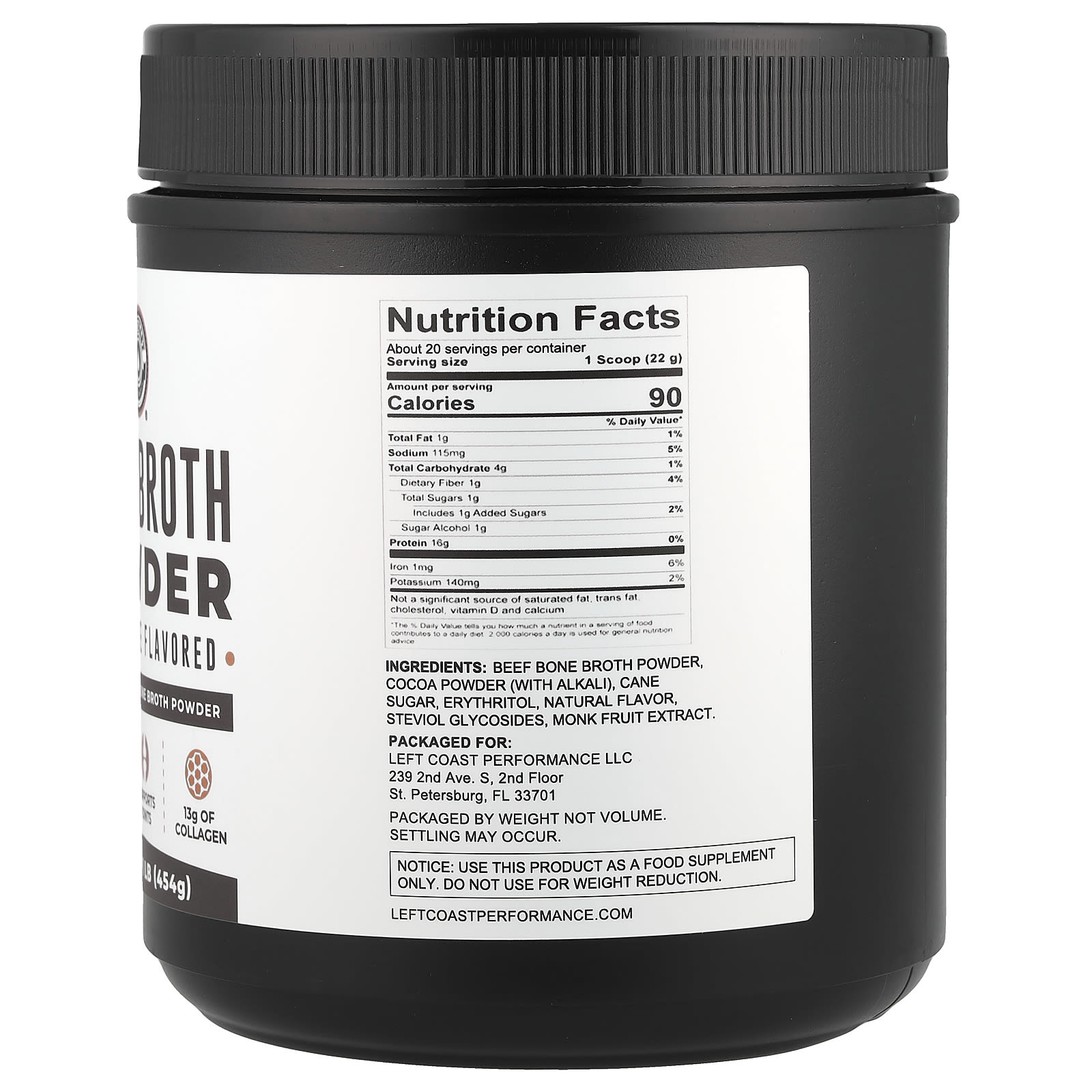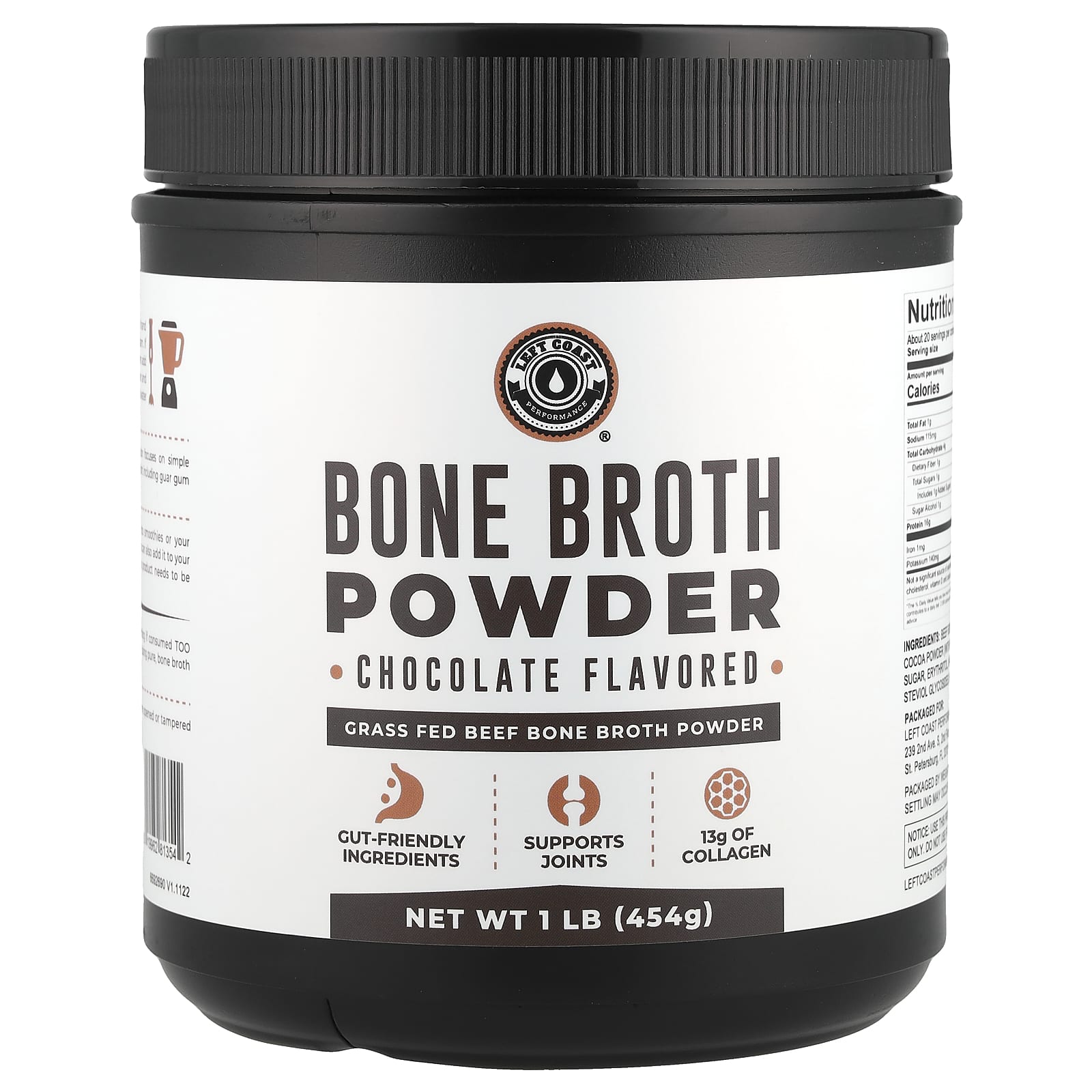 Left Coast Performance Caldo de Ossos em Pó Chocolate 454 g (1 lb) – Left Coast Performance Suplementos Ossos, Articulações e Cartilagem Caldo de ossos.