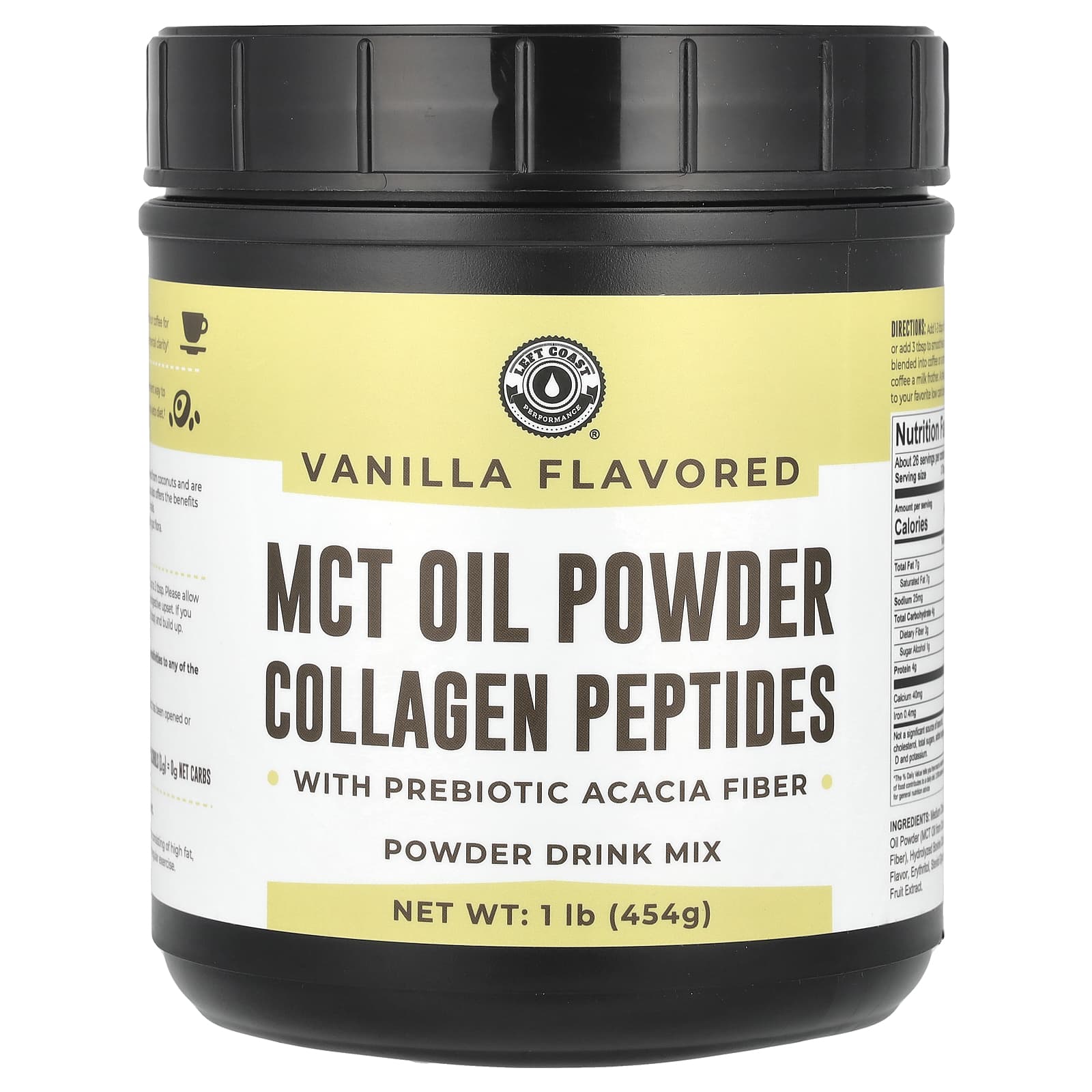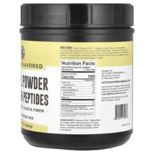 Left Coast Performance Peptídeos de Colágeno em Pó do Óleo TCM com Prebiótico e Fibra de Acácia Baunilha 454 g (1 lb) – Left Coast Performance Suplementos Controle de peso Óleo de TCM e Ácido Caprílico.