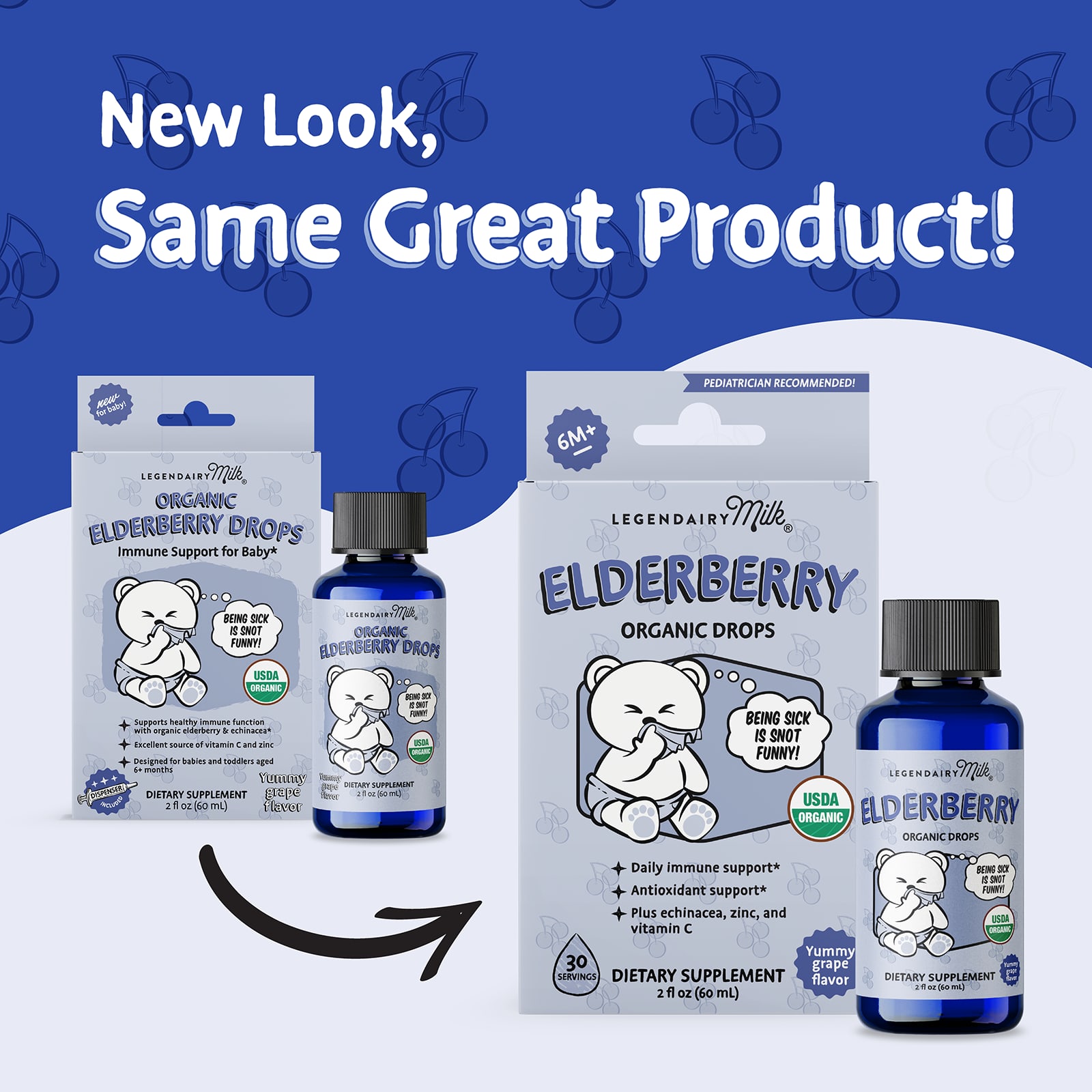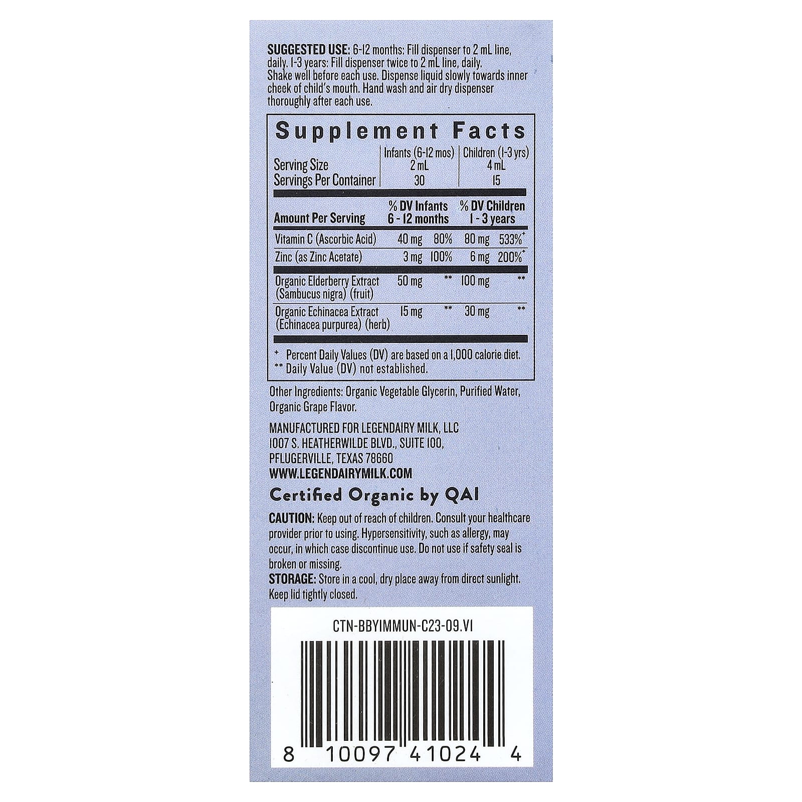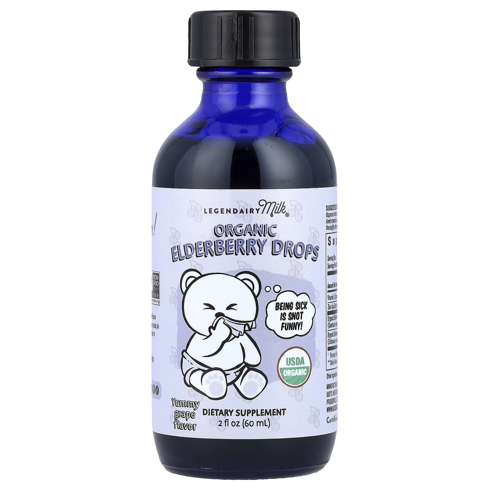 Legendairy Milk Gotas de Sabugueiro Orgânico Acima de 6 Meses Uva Deliciosa 60 ml (2 fl oz) – Legendairy Milk Bebês e Crianças Saúde Infantil Vitaminas para Crianças Vitamina C para Crianças Minerais infantis Zinco para Crianças.