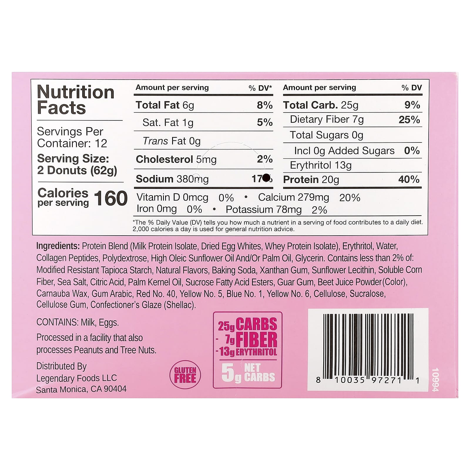Legendary Foods Donut de Proteína Granulado Rosa 12 Pacotes 62 g (22 oz) Cada – Legendary Foods Nutrição Esportiva Proteína Misturas de Proteínas.