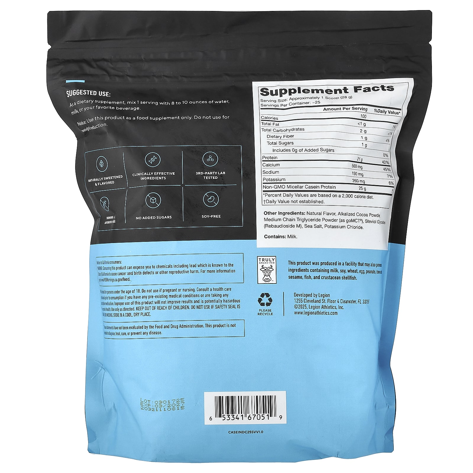 Legion Athletics Casein+ Proteína de Caseína em Pó Chocolate Holandês 710 g (156 lb)