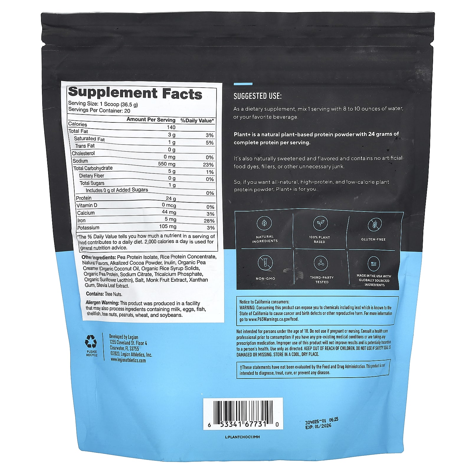 Legion Athletics Plant+ Proteína em Pó Vegana Chocolate Holandês 730 g (161 lb) – Legion Athletics Nutrição Esportiva Proteína Proteína Vegetal.