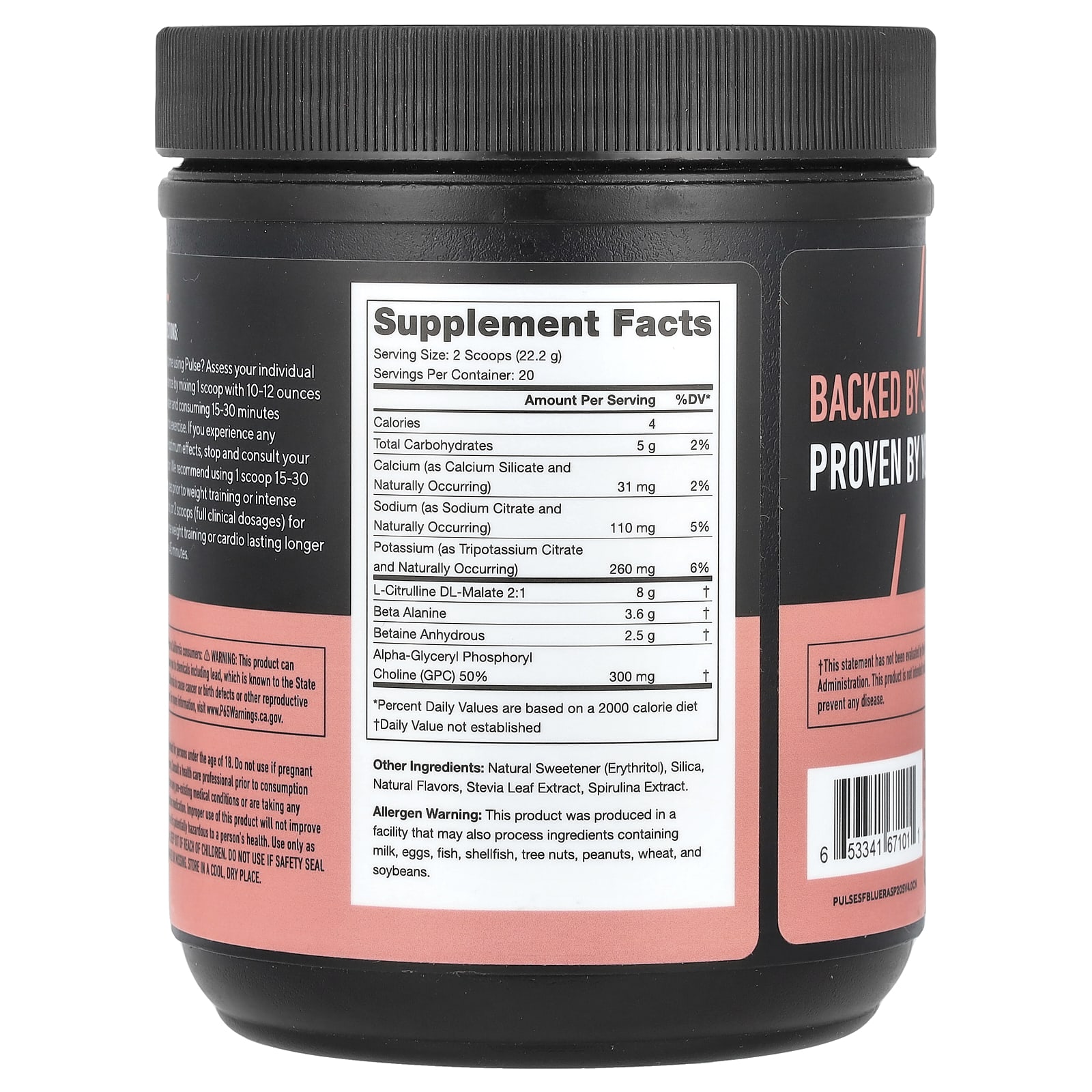 Primeira vez usando o Pulse? Avalie sua tolerância individual misturando 1 colher medidora com 10 a 12 oz de água e tomando de 15 a 30 minutos antes do exercício. Se você sentir quaisquer efeitos não ideais, interrompa o uso e consulte o seu médico. Recomendamos o uso de 1 colher medidora de 15 a 30 minutos antes do treino com pesos ou cardiovascular intenso, ou 2 colheres medidoras (dosagens clínicas completas) para treino com pesos ou cardiovascular intenso com duração de mais de 45 minutos.