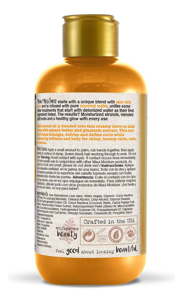 Maui Moisture Curl Quench + Leite de cabelo antifrizz que define cachos para hidratar e desembaraçar cabelos encaracolados apertados, tratamento suavizante sem enxágue, vegano, sem silicone e parabenos, 8 fl oz – Tratamento de leite ondulado sem óleo de coco – Desfrizz e defina os cachos: este frasco de 8 onças fluidas de Maui Moisture Curl Quench e leite antifrizz de óleo de coco ajuda a hidratar, suaviza e desfriza os cachos enquanto define o padrão natural de ondulação do cabelo – CUIDADO COM CABELOS CACHEADOS: ideal para cabelos grossos e firmes e seguro para uso em cabelos tingidos, o tratamento nutritivo sem enxágue desliza e desliza no cabelo com facilidade, ajudando a desembaraçar e realçar os cachos – MISTURA ÚNICA COM ALOE VERA: A mistura rica deste leite vegano que define os cachos contém 100% de aloe vera como primeiro ingrediente junto com leite de coco, extrato de plumeria e extrato de mamão – NEM TODA UMIDADE É A MESMA: A fórmula suave e nutritiva deste leite ondulado sem surfactante sulfatado é vegana, sem silicones, e óleo mineral e não contém corantes sintéticos
