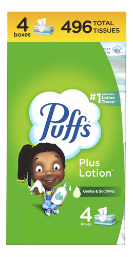 Lenços faciais Puffs Plus Lotion, 4 caixas familiares, 124 lenços por caixa — O pacote inclui 4 caixas familiares (124 lenços por caixa) de lenços faciais Puffs Plus Lotion — O lenço de loção mais vendido na América* *Com base em dados de vendas – Suave e calmante! #1 – Mantém-se melhor do que os lenços normais – Nossos tecidos mais calmantes