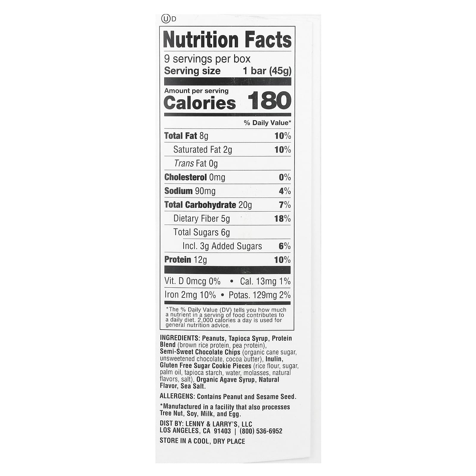 Lenny & Larrys A Barra Completa com Biscoitos Manteiga de Amendoim com Lascas de Chocolate 9 Barras 45 g (159 oz) Cada