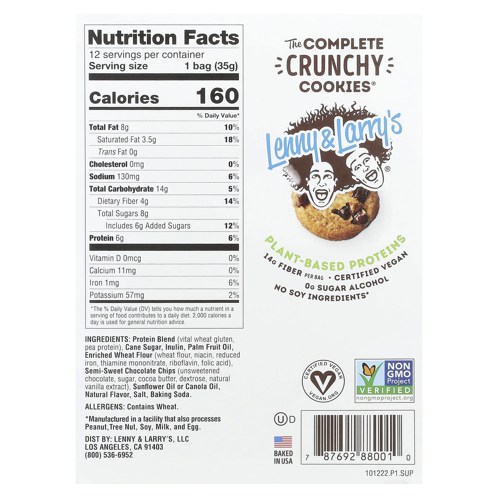 Lenny & Larrys The Complete Crunchy Cookies® Gotas de Chocolate 12 Sacos 35 g (125 oz) Cada