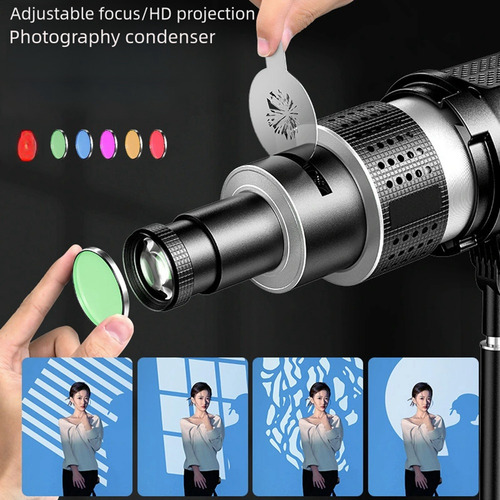 [MULTIFUNCIONAL]: Em primeiro lugar, o design do anel de foco pode tornar a projeção clara. E outra função importante é que você pode obter a projeção de um ponto para outro alterando manualmente o tamanho da abertura. Muito adequado para fotógrafos fotografarem retratos e produtos.
