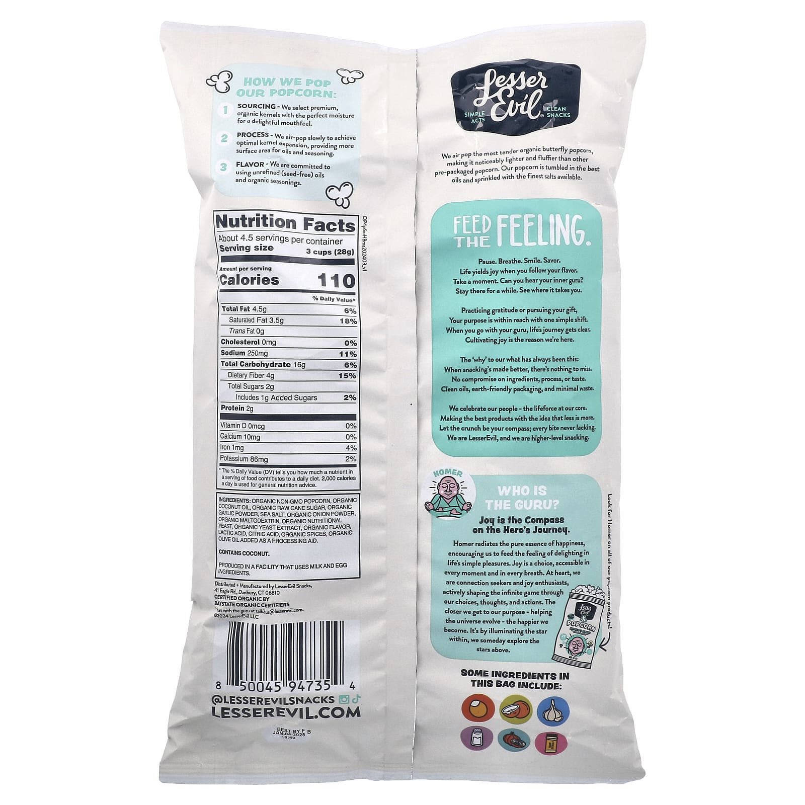 LesserEvil Pipoca Mistura do Homer Alho e Parmesão 130 g (46 oz) – LesserEvil Alimentos Petiscos e lanches Pipoca.
