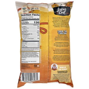 Milho moído orgânico, óleo de abacate orgânico, tempero cheddar branco orgânico (sólidos de tapioca orgânica, sal marinho, leitelho orgânico, sabor orgânico, queijo cheddar orgânico (leite orgânico, de leite, sal, enzimas), leite desnatado orgânico, extrato de fermento orgânico, ácido láctico, ácido cítrico).