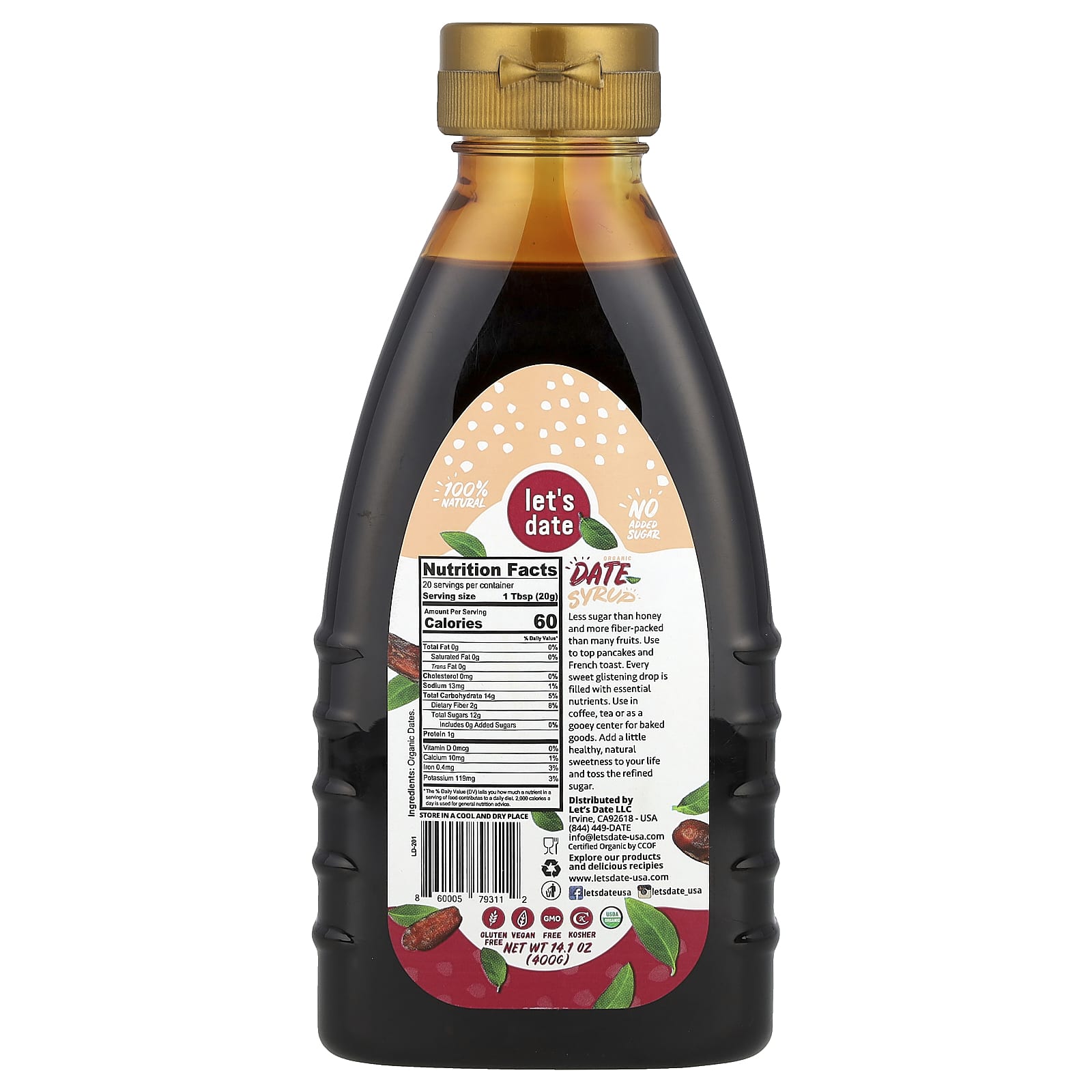 Lets Date Xarope de Tâmara Orgânica 400 g (141 oz) – Let’s Date Alimentos Mel e adoçantes Xaropes.