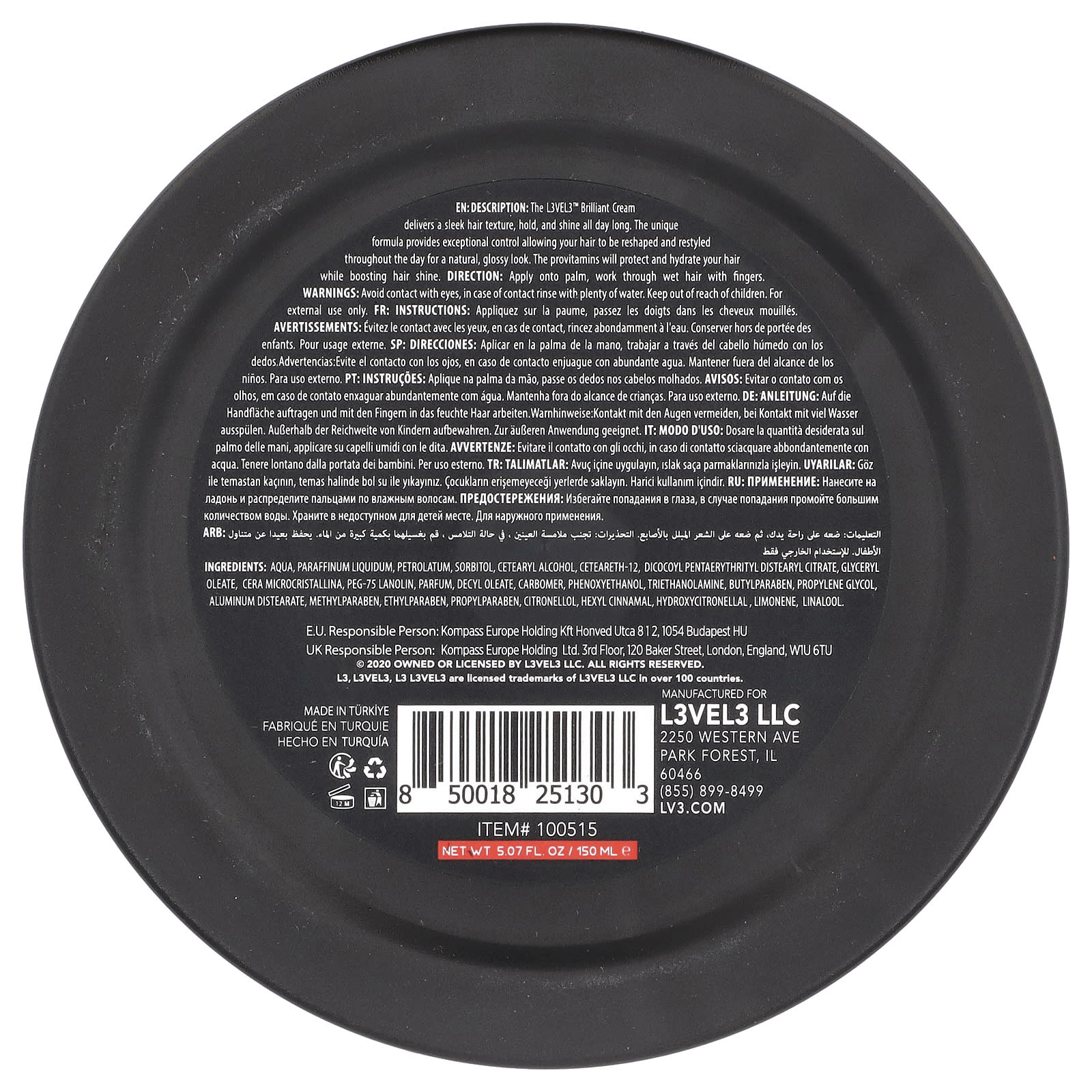 Level 3 Brilliant Cream Brilho Médio 150 ml (507 fl oz) – Level 3 Cuidados Pessoais Cuidados Masculinos Produtos para Cabelo Masculino.